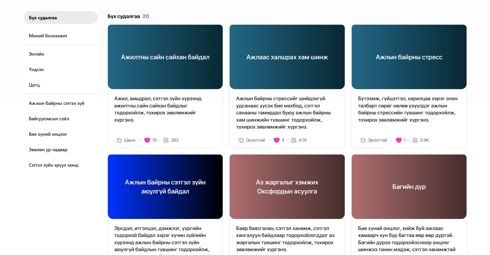 Сэтгэл зүйн эрүүл мэндийн шинжлэх ухаан дээр тулгуурласан цогц платформ, таны ажлын байрны сайн сайханг удирдахад туслах болно.
